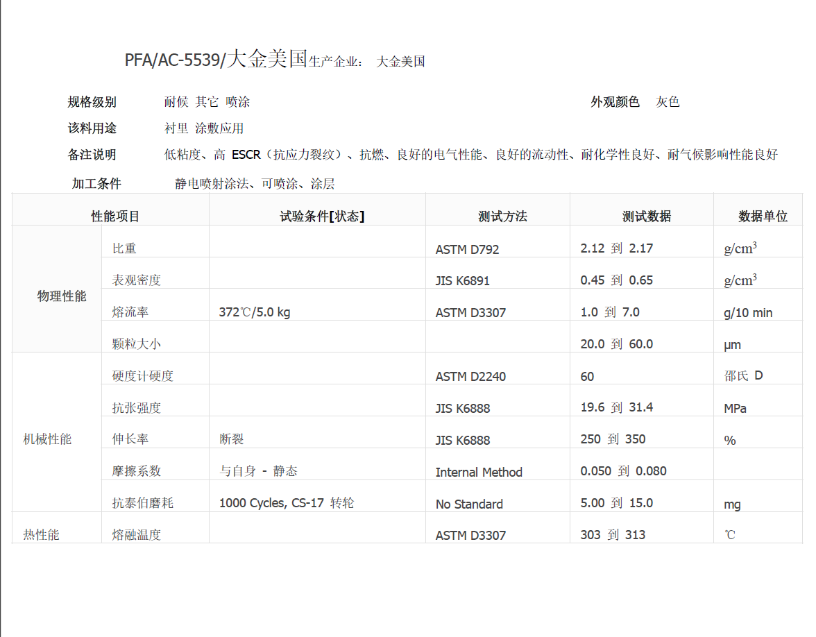 產品詳情:PFA噴涂粉 EC-5539 日本大金